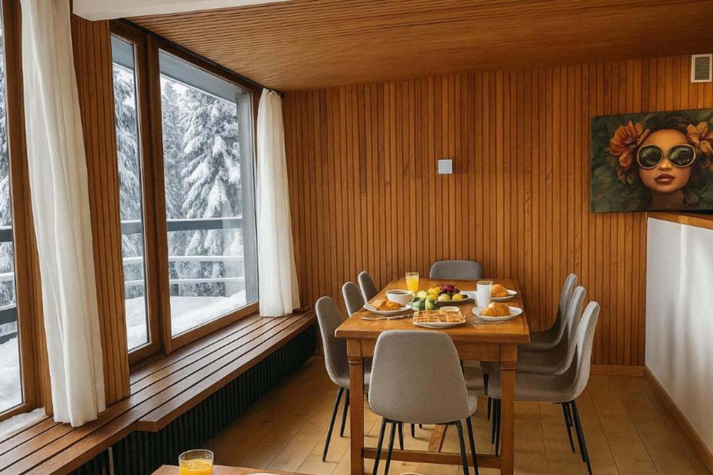 Set in Chamonix-Mont-Blanc in the Rhône-Alps region, Bright apartment for 6 people in Chamonix has a balcony. The property is situated 3.9 km from Montenvers - Mer de Glace Train Station, 13 km from Aiguille du Midi and 13 km from Stepthe Void. The property is non-smoking and is located 23 km from Skyway Monte Bianco.