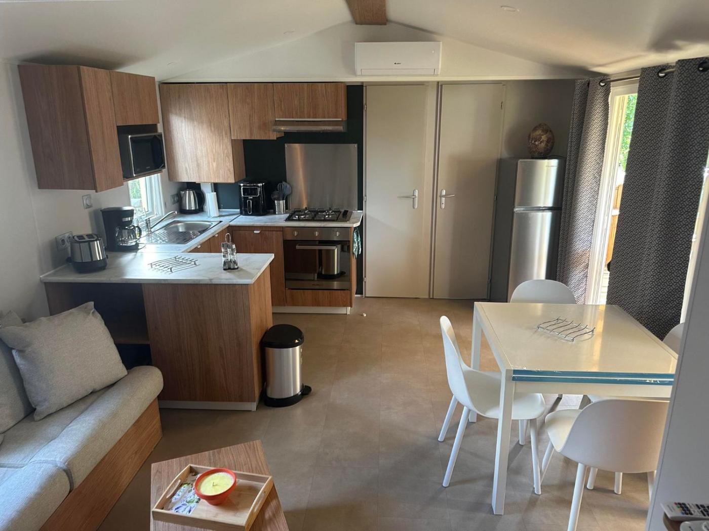 Mobile Home. Featuring a private entrance, this air-conditioned mobile home consists of 1 living room, 2 separate bedrooms and 2 bathrooms with a shower and a hairdryer. Guests will find a stovetop, a refrigerator, a dishwasher and kitchenware in the well-equipped kitchenette. The mobile home also offers a barbecue. This mobile home features a washing machine, a tea and coffee maker, a flat-screen TV with cable channels and a terrace. The unit offers 4 beds.